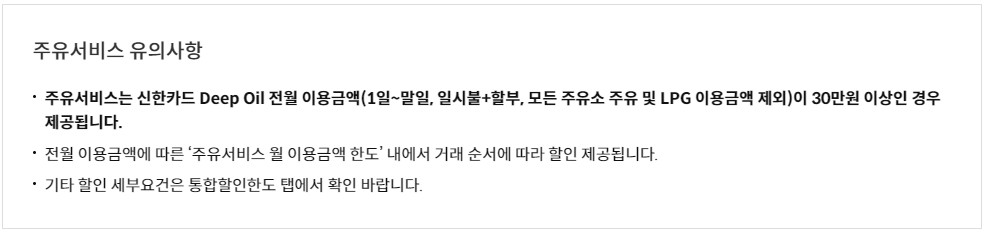 자 신한 딥오일 카드의 상세할인까지 확인해 봤는데요 역시 한국사람 말은 끝까지 봐야합니다. 모든 카드사가 그렇듯 속시원하게 딱! 조건없이 얼마 할인! 중복할인 가능! 이렇게 외쳐주면 얼마나 좋을까요? 욕심인가요..?ㅠㅠ